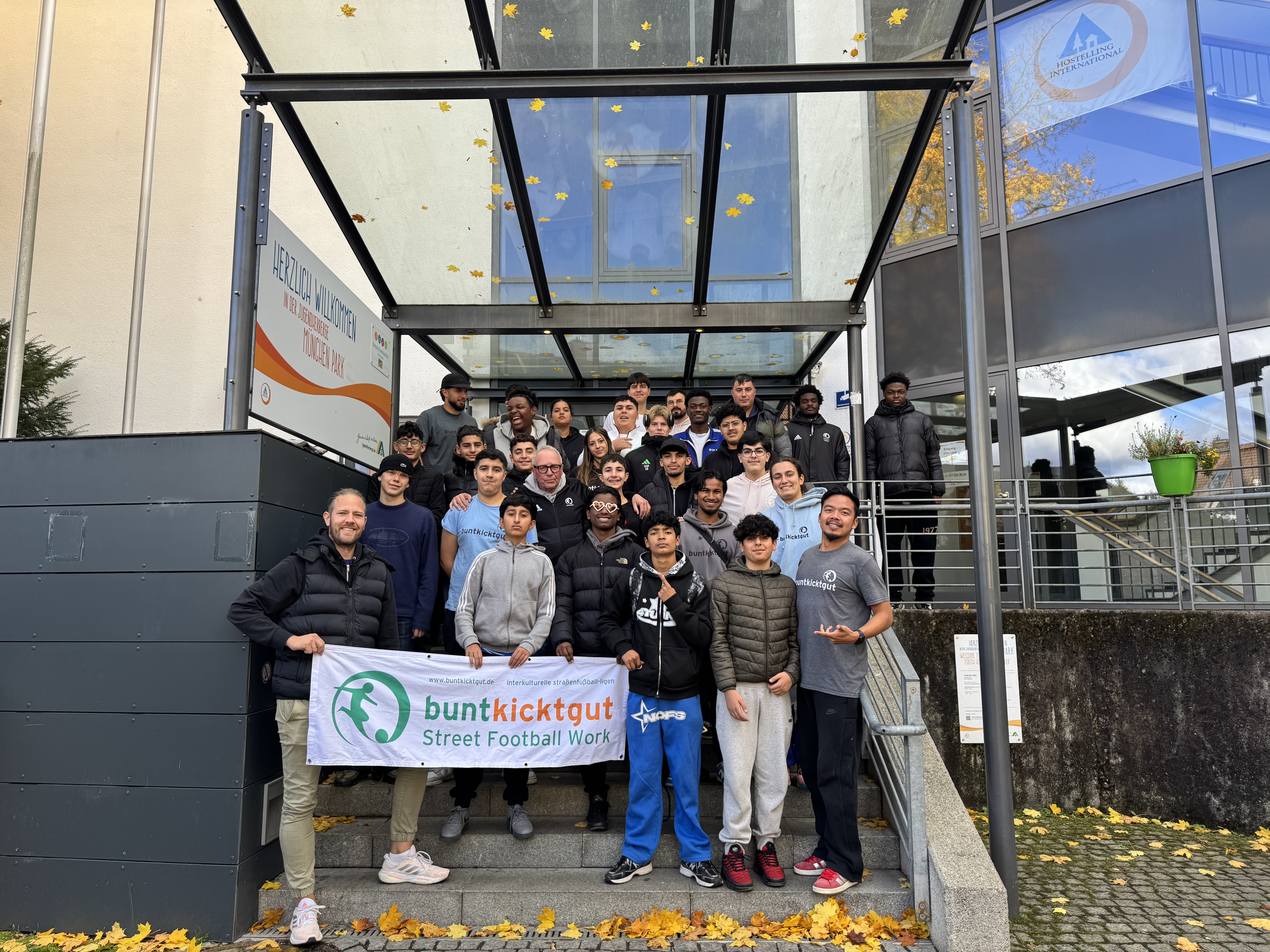 Es regnete viel, sehr viel. Doch das konnte die über 50 Jugendlichen nicht bremsen. Der bundesweite Workshop für Street Football Work von buntkicktgut, der dieses Mal in München stattfand, lief trotzdem rund und bunt. Rund, weil die Teilnehmenden aus Berlin, Hamburg, Ludwigshafen am Rhein und der Region Oberschwaben/Allgäu bei den verschiedenen Workshops, Trainings und der Stadtrallye durch München einfach gut Gas gegeben haben. Und bunt, weil es bei den interkulturellen Straßenfußball-Ligen einfach immer bunt zur Sache geht. Die jungen Menschen aus den verschiedenen Standorten, mit unterschiedlichsten Nationalitäten und kulturellen Hintergründen, spielten einfach gut zusammen – auf wie neben dem Bolzplatz. Junge Menschen, die nach vorne schauen und etwas erreichen wollen.